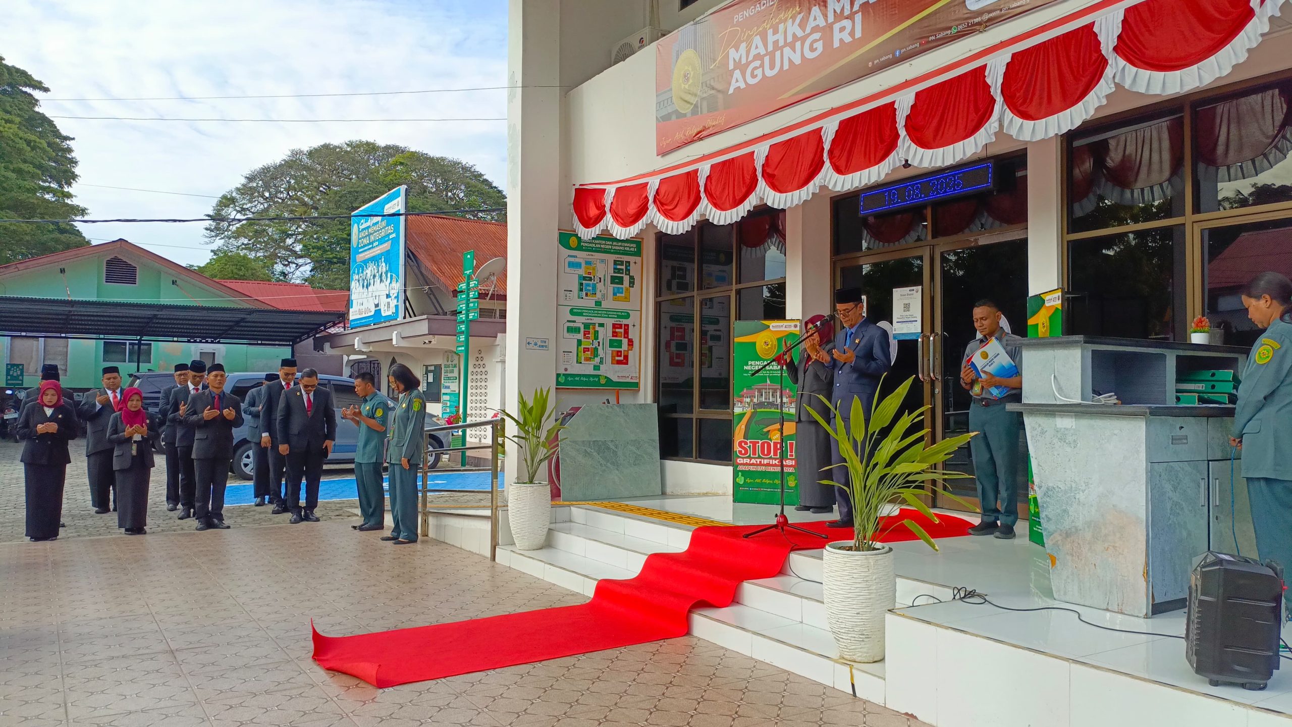 Upacara dipimpin langsung oleh Bapak Maimunsyah, S.H., M.H., selaku pembina upacara. Dengan mengusung tema “Pengadilan Bermartabat, Negara Berdaulat”, peringatan ini menjadi momentum untuk memperkuat komitmen aparatur peradilan dalam memberikan pelayanan hukum yang adil, transparan, dan bermartabat.