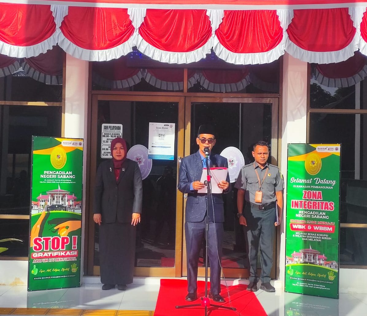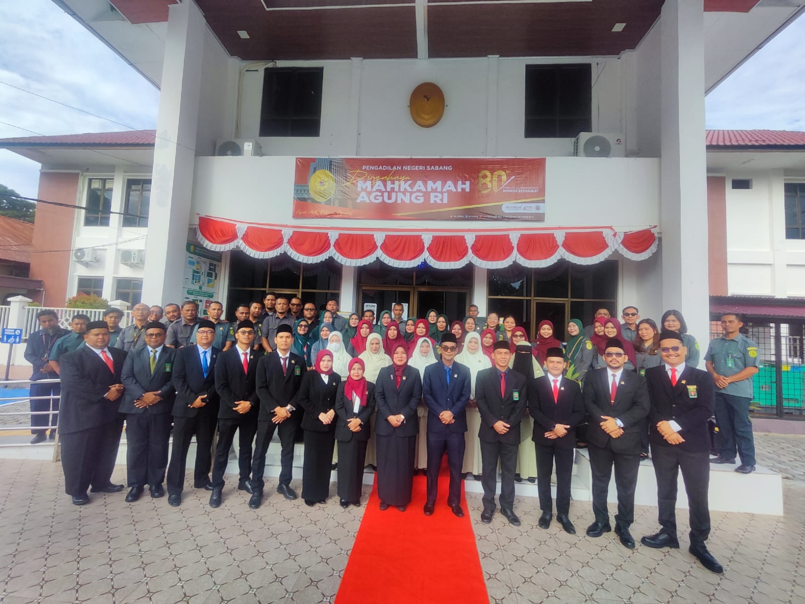 Sabang, 19 Agustus 2025 — Dalam rangka memperingati Hari Ulang Tahun Mahkamah Agung Republik Indonesia yang ke-80, Pengadilan Negeri Sabang bersama Mahkamah Syar’iyah Sabang melaksanakan upacara gabungan pada hari Senin, 19 Agustus 2025. Kegiatan tersebut berlangsung khidmat di halaman Kantor Pengadilan Negeri Sabang.