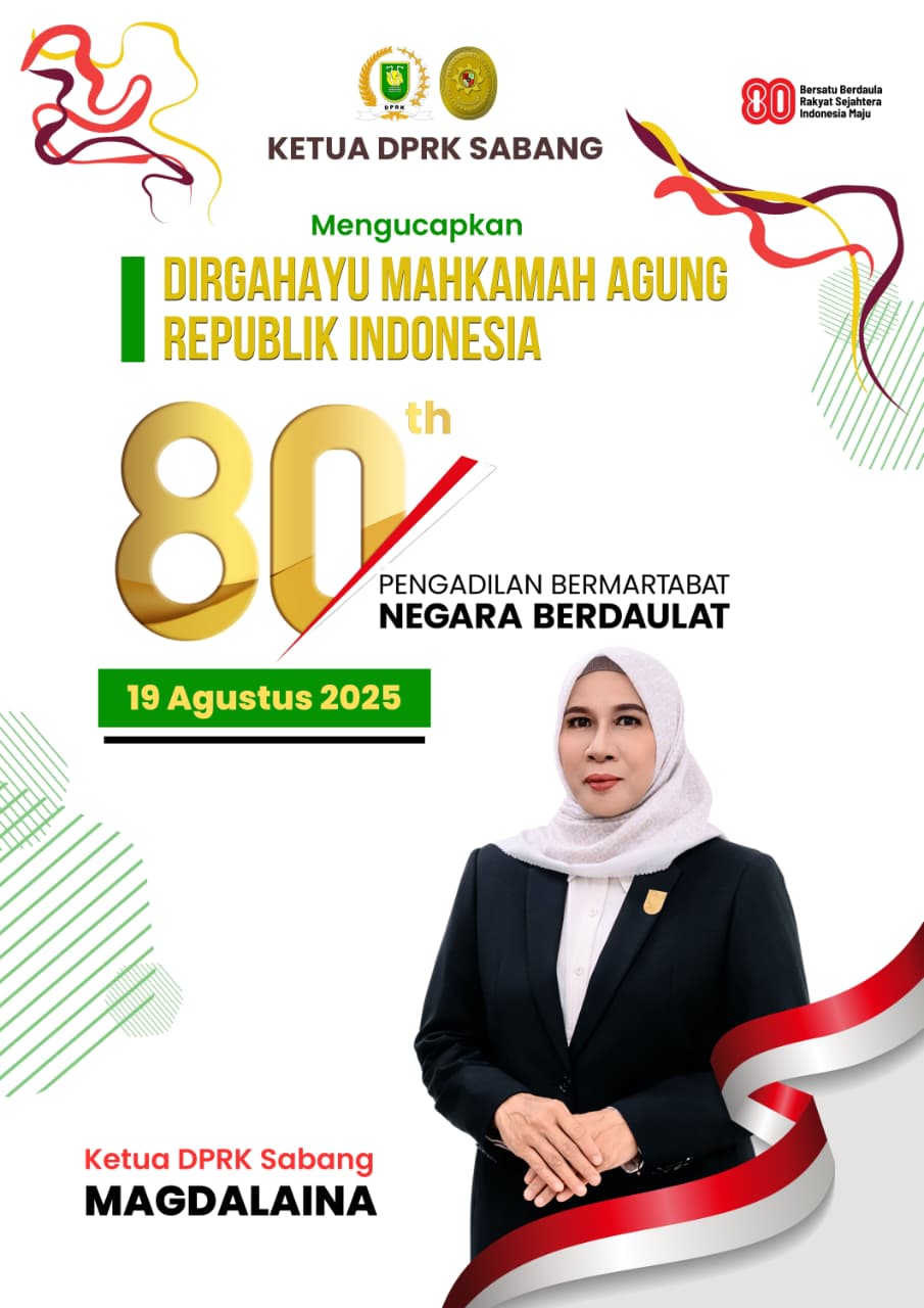 Terimakasih atas ucapan selamat Dirgahayu Mahkamah Agung Republik Indonesia ke-80 untuk Mahkamah Syar’iyah Sabang.